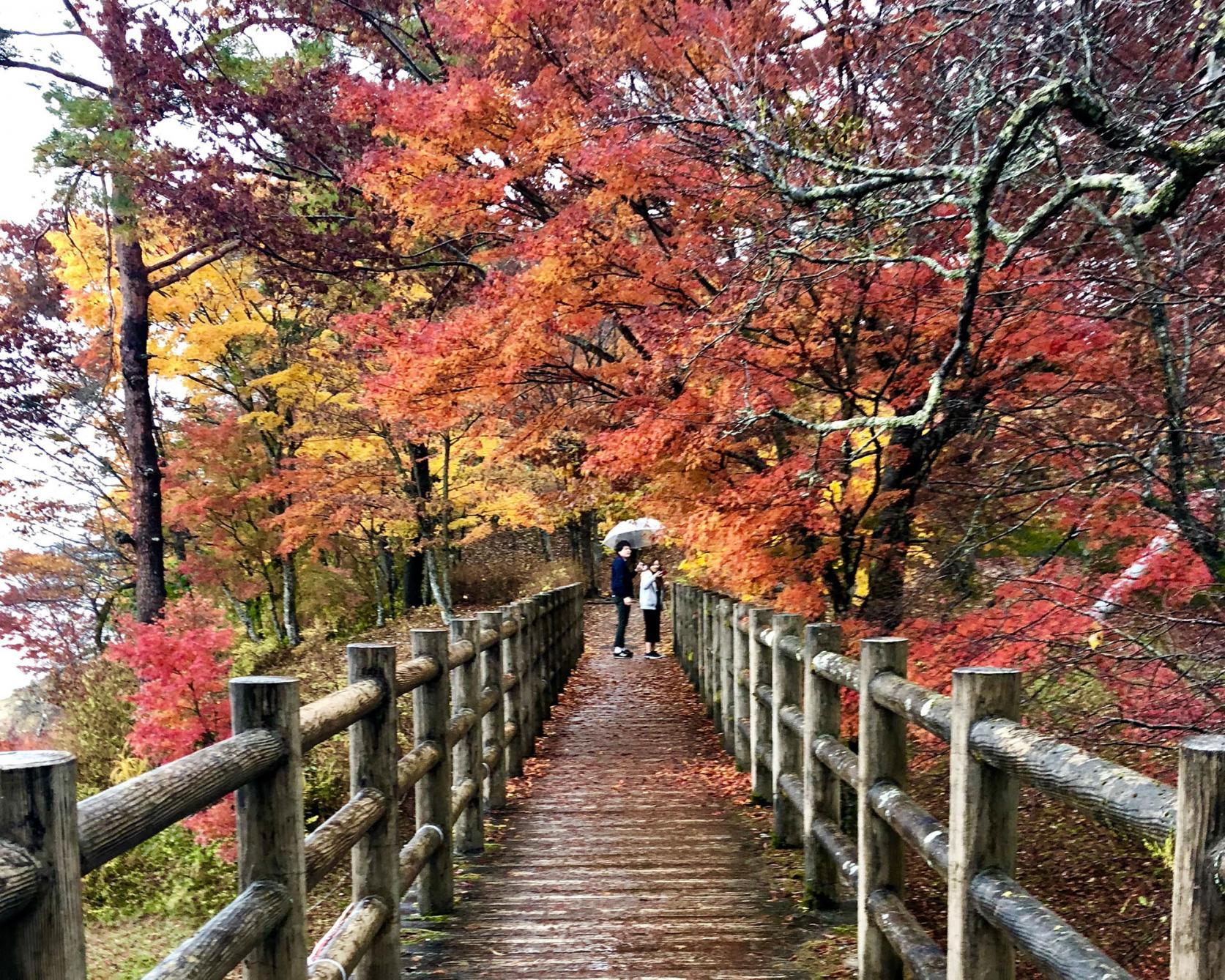 旭日丘湖畔緑地公園は、山梨県山中湖村の湖畔に広がる静かな雰囲気の公園で四季折々の自然の美しさを楽しめる山中湖屈指の景勝地として人気があります。 特に紅葉が有名で、秋には多くの観光客が訪れるスポットです。毎年10月下旬~11月中旬ごろまで「夕焼けの渚・紅葉祭り」が開催され、大人気のイベントとなっています。